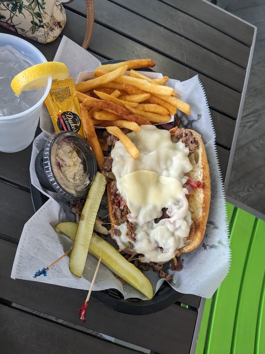 Steak sandwich was very good! Slightly salty but that's inherent with a Philly. Unfortunately the Pier is closed but hasn't hurt their business yet. Front end gal was very friendly and helpful.