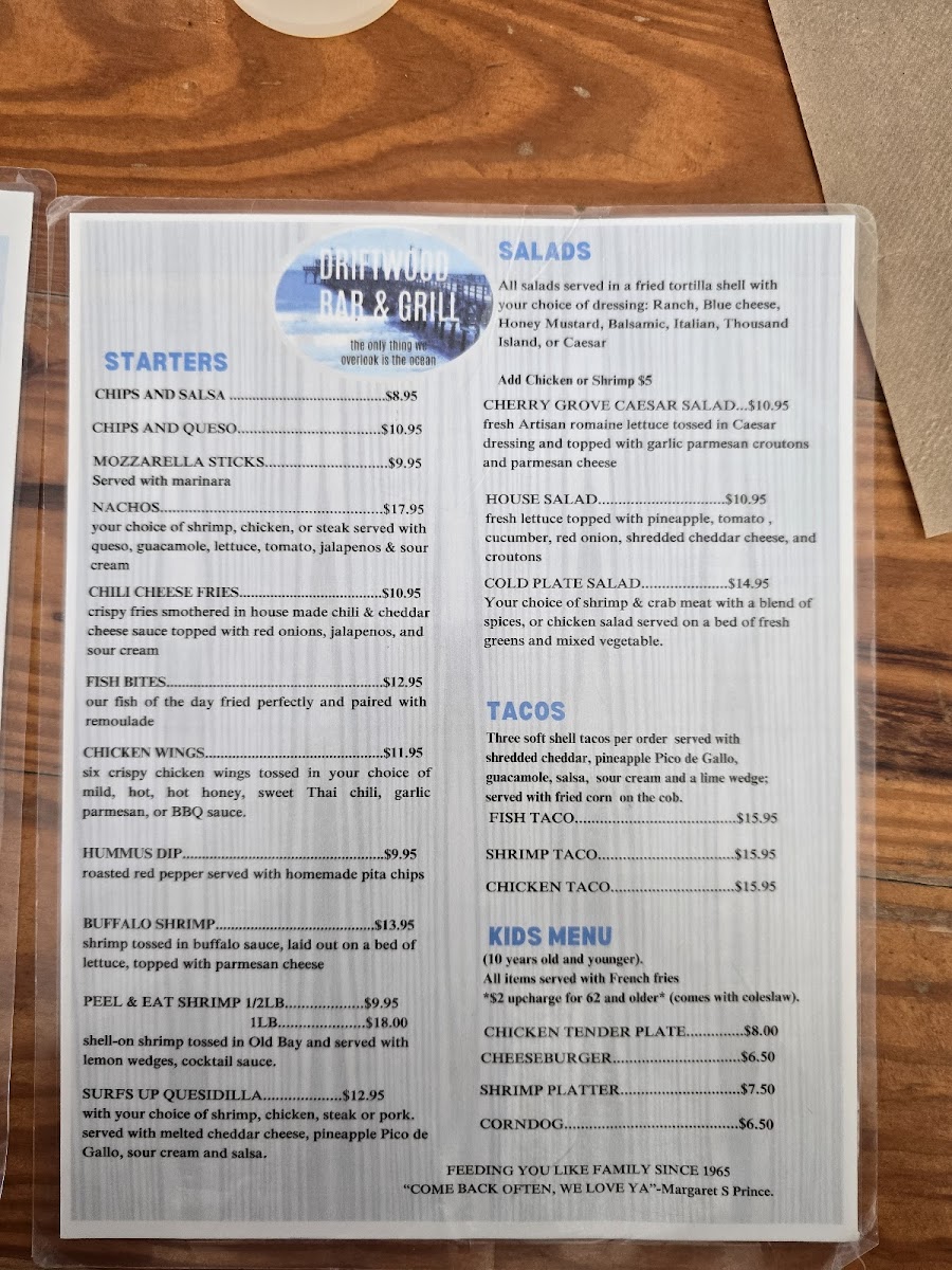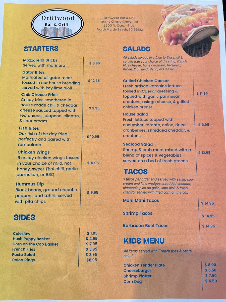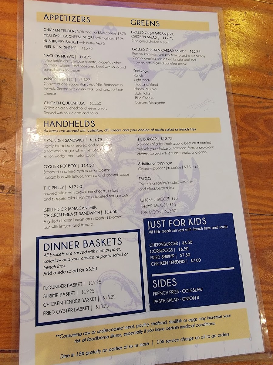 The menu also includes a variety of tacos and meal baskets that make for a casual yet complete bite. Alongside classic fried sides like hushpuppies with honey butter or chicken tenders with fries, these choices easily fit into a laid-back coastal dining experience. The overall feel is welcoming and unpretentious, where guests can enjoy familiar comfort foods and thoughtfully crafted beverages in a warm setting.