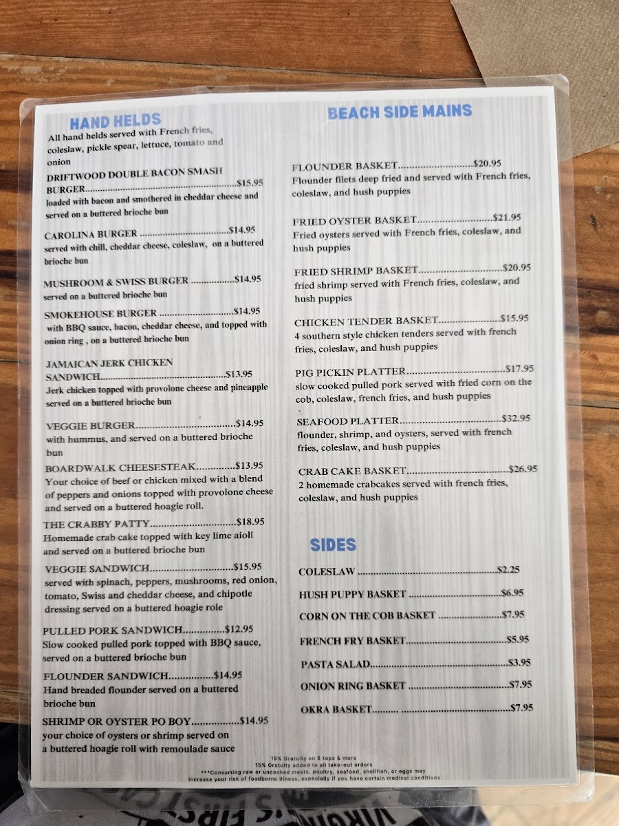 Boardwalk Beach Cafe Menu